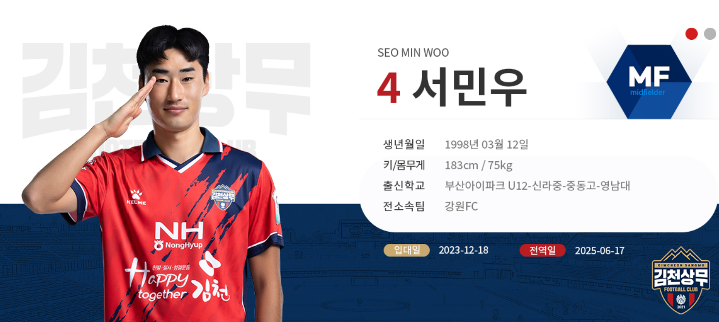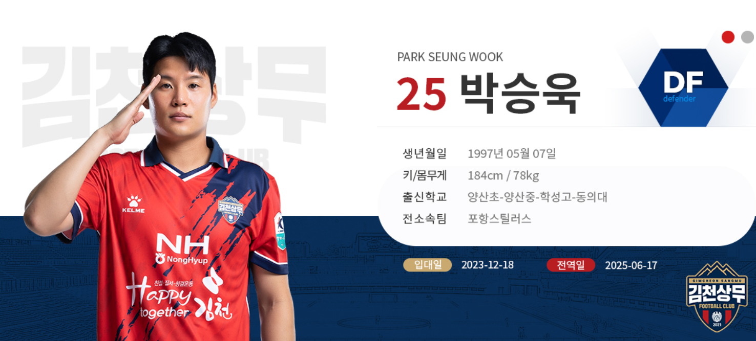 김천 상무에서 2년차를 보내고 있기 때문에