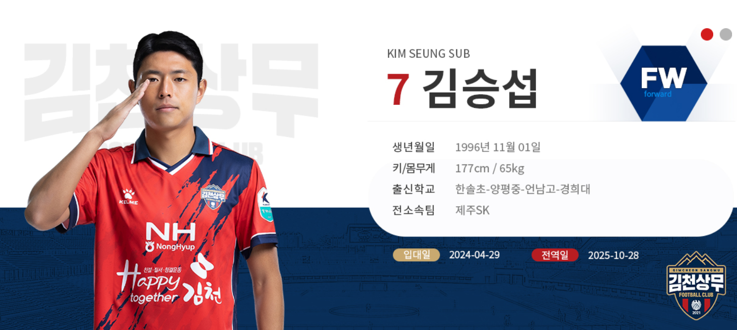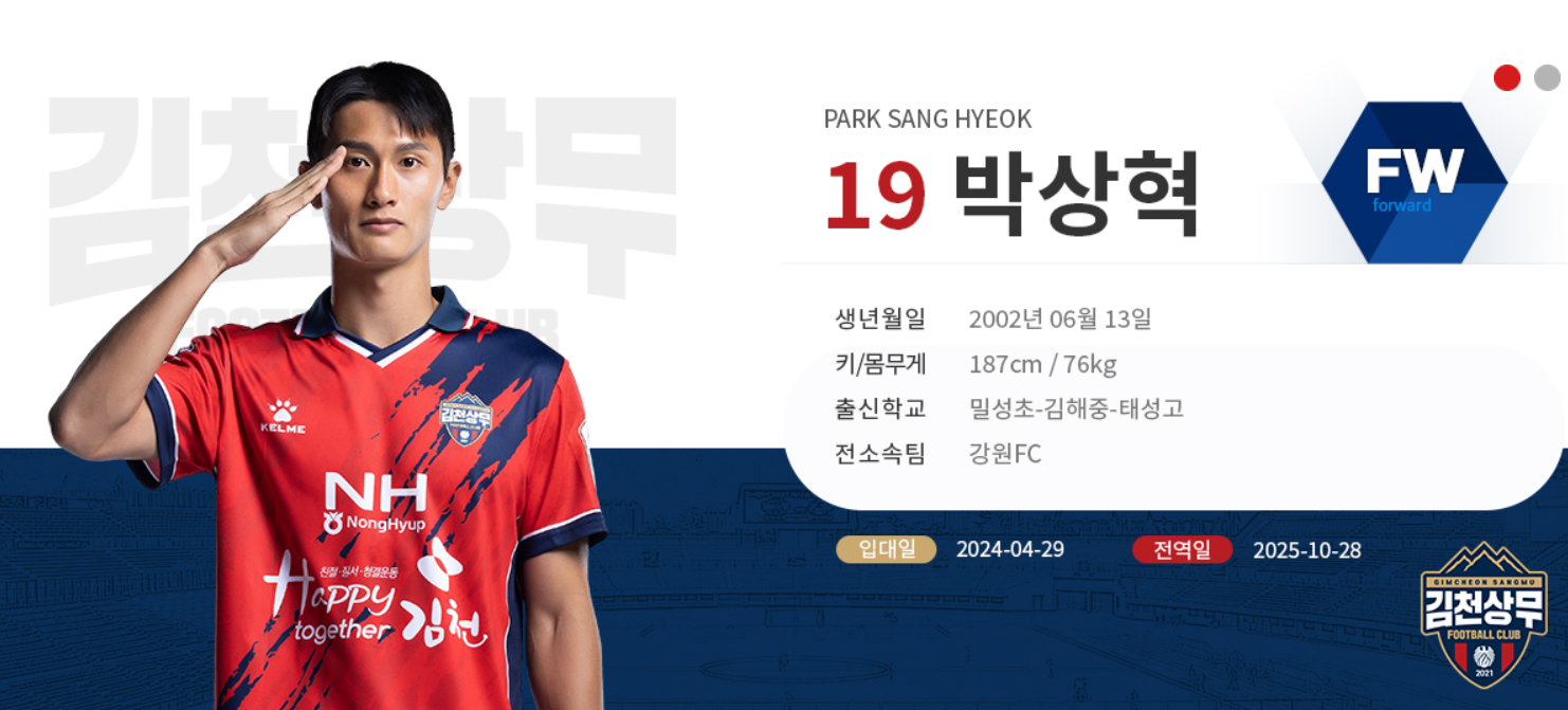 25시즌 김천 상무 축구단의 선수들을 소개합니다.