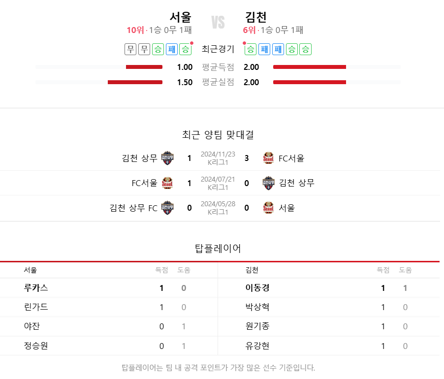 FC서울과 김천 상무의 경기 예측 시작하겠습니다.
