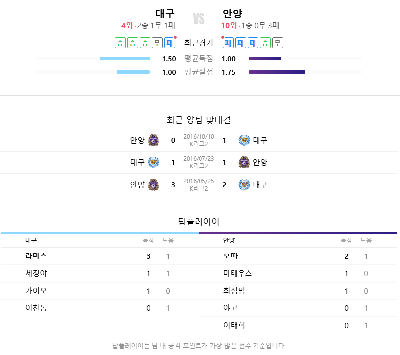 이번에도 안양이 승점을 챙기기는 어려울 것 같네요.