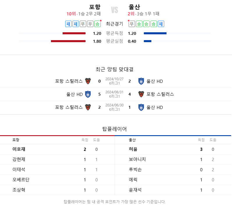 이번 포항전에는 반드시 승리하려고 이를 갈고 있을 것 같습니다.