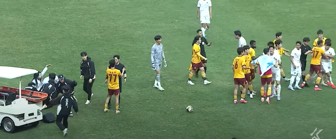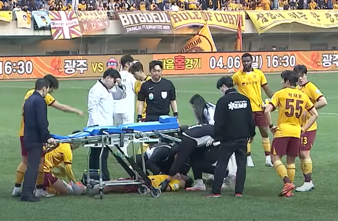 광주 수비수 조성권 선수가 의식을 잃었습니다.